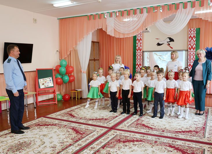 Воспитатели через игру и беседу учат своих воспитанников многому. В этот раз прошло занятие «Письмо о Республике Беларусь», цель которого – рассказать о государственных символах, праздниках, о соблюдении правил поведения на церемонии исполнения гимна, а также о предприятиях Беларуси и важных профессиях.