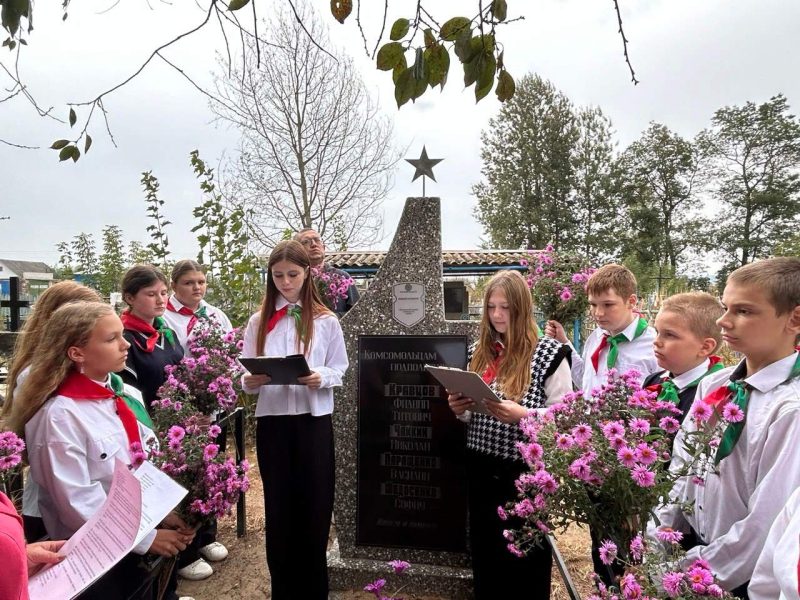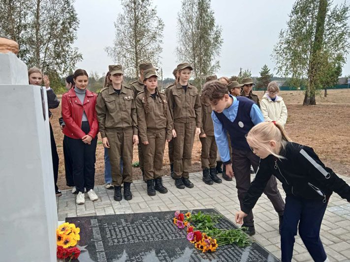 27 сентября, накануне Дня освобождения Костюковщины от немецко-фашистских захватчиков учащиеся 7-х классов вместе с педагогом-организатором Еленой Марченко и журналистами «ГК» провели на братской могиле урок-митинг с рассказом о подвиге молодых подпольщиков, об их героизме и стойкости. Ребята возложили цветы на братскую могилу, почтили память погибших минутой молчания. Многие здесь были не в первый раз.