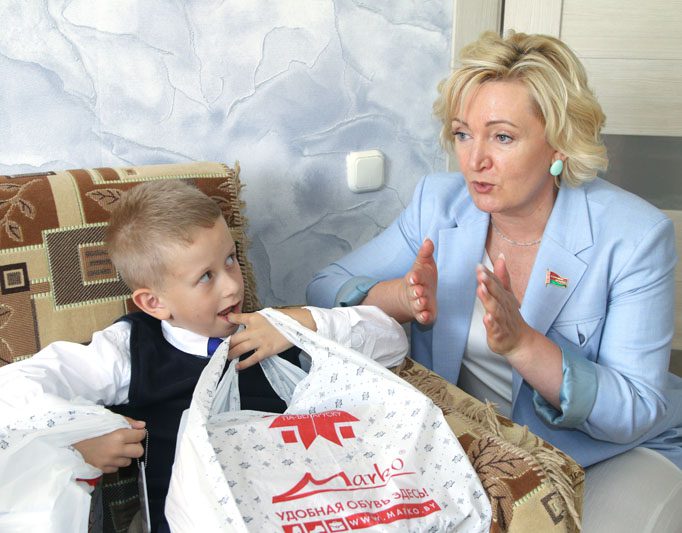 Набравшись позитивных эмоций на празднике первого звонка, первоклассник Альберт Довыденко, воспитанник детского дома семейного типа, получил еще подарки от Белорусского фонда мира. А вручили необходимую школьнику обувь депутат Палаты представителей Национального собрания Республики Беларусь Александра Михеенко и