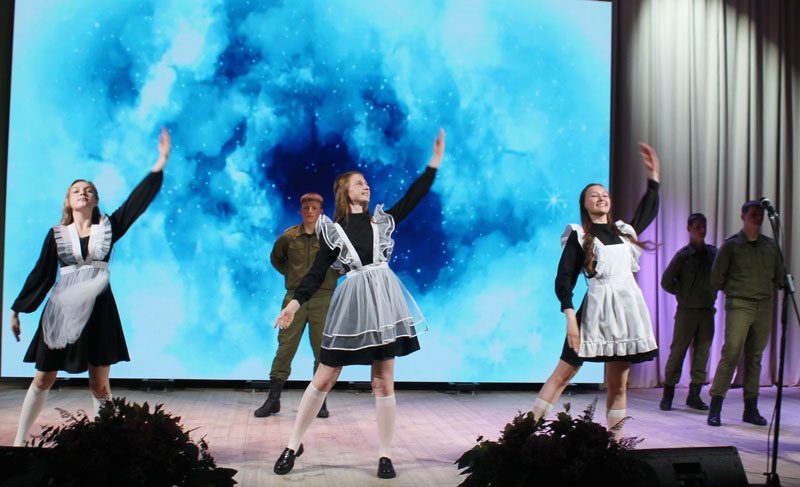 Праздничное настроение дарили участникам мероприятия талантливые артисты, а также на сцене исполнили вальс курсанты клуба и участницы танцевальных коллективов школ города.