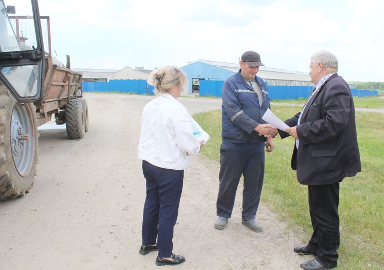 Александр Омельченко и Наталья Рылик также побывали в КСУП «Парижская Слобода», встретились с механизаторами Василием Тимощенко и Дмитрием Кузьменковым и поблагодарили людей за хорошую работу.