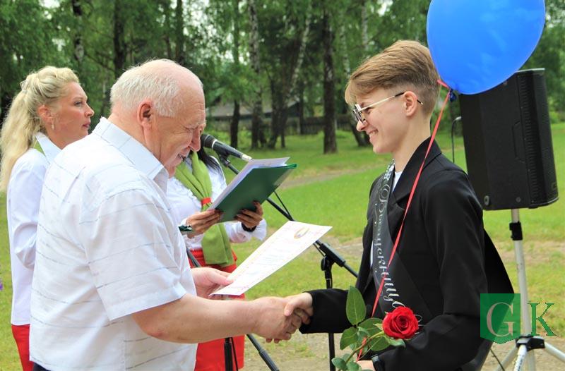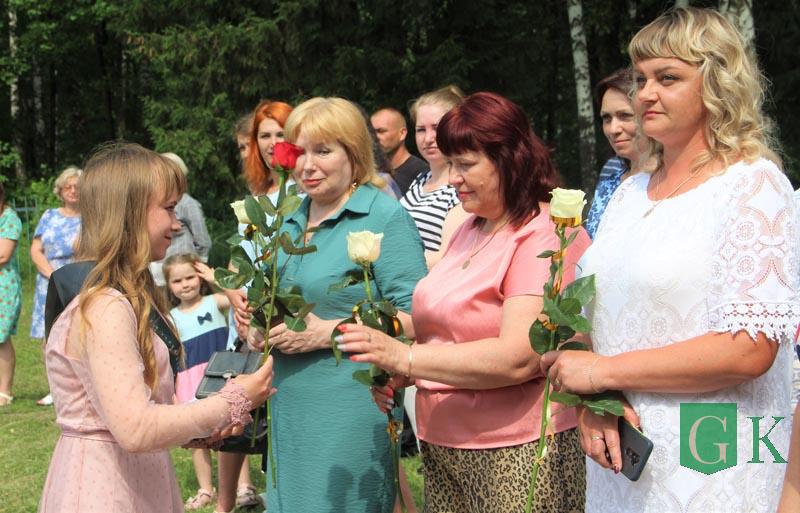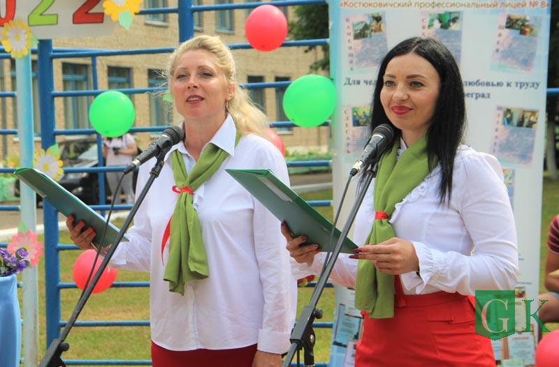 Торжественная линейка по случаю выпуска состоялась 29 июня в лицее. Поздравить ребят выпускных групп приехали почетные гости: заместитель председателя райисполкома Валентина Манушенко, заместитель председателя комиссии по делам несовершеннолетних Костюковичского райисполкома Людмила Голочевская, инспектор ИДН Анна Савицкая и главный бухгалтер РК ОО «БРСМ» Наталья Фролова.
