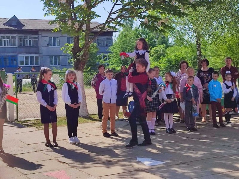 Школьный праздник начался с исполнения государственного гимна Беларуси и поднятия госфлага.
