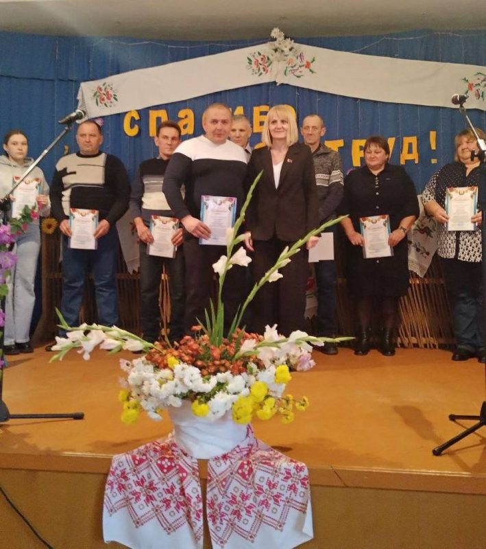 Заслуженные награды лучшим труженикам села вручили управляющий делами районного исполнительного комитета Оксана Шабусова, председатель райкома профсоюзов работников АПК Наталья Рылик, управляющий хозяйством Александр Пищиков.