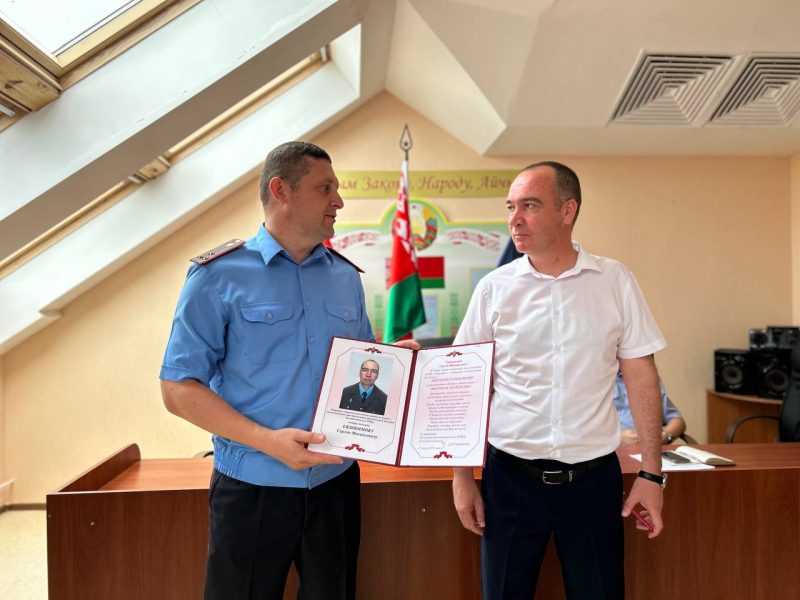 Далее прошла официальная часть награждения сотрудников, внесших значительный вклад в развитие и поддержание порядка в районе. Награды различных уровней были вручены следующим достойным представителям подразделения: Виктор Сорока, старший инженер по организации дорожного движения Межрайонного отдела ГАИ, награжден Грамотой управления внутренних дел Могилевского облисполкома. Александр Напреенко, ведущий специалист отделения по гражданству и миграции, отмечен грамотой начальника учреждения образования «Военной академии Республики Беларусь» Вооруженных Сил Республики Беларусь.