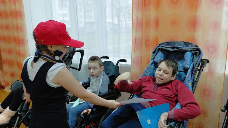 5 декабря, в Международный день волонтеров, ребята с акцией отправились в Центр коррекционно-развивающего обучения и реабилитации. Юные волонтеры вместе с методистом районного Центра культуры Алиной Пурсаковой сначала организовали дружескую презентацию-знакомство, затем рассказали детям, с какой целью пришли, и вручили подарки.