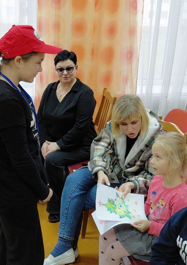 После вручения подарков началась творческая часть. Юные волонтеры с детьми рисовали рисунки на зимнюю тематику и развлекались.