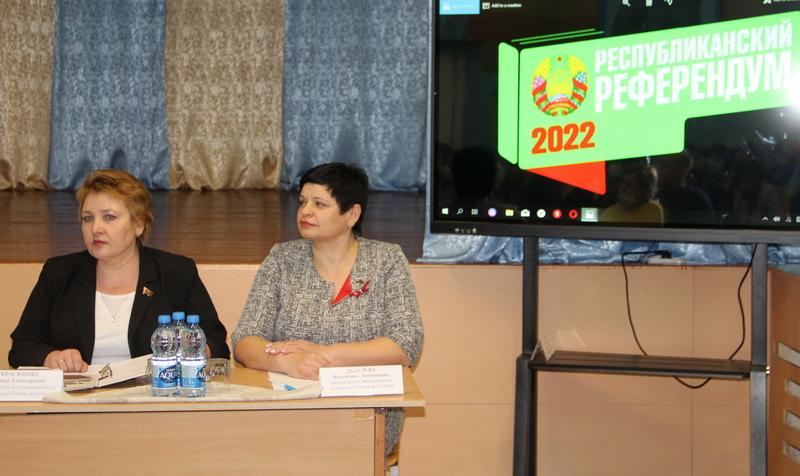 Открывая мероприятие Лариса Элионировна подчеркнула, что жители Приднепровского края находятся в преддверии важнейшего политического события в жизни страны — республиканского референдума. Для проведения этого масштабного мероприятия созданы и работают областная и районная комиссии. В трудовых коллективах предприятий и организаций, по месту жительства граждан проходят встречи, на которых обсуждаются изменения и дополнения Основного Закона страны.