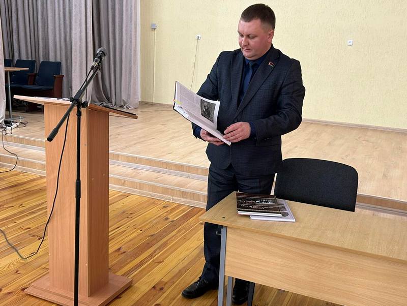 Прокурор района также продемонстрировал уникальное издание — книгу «Геноцид белорусского народа»: