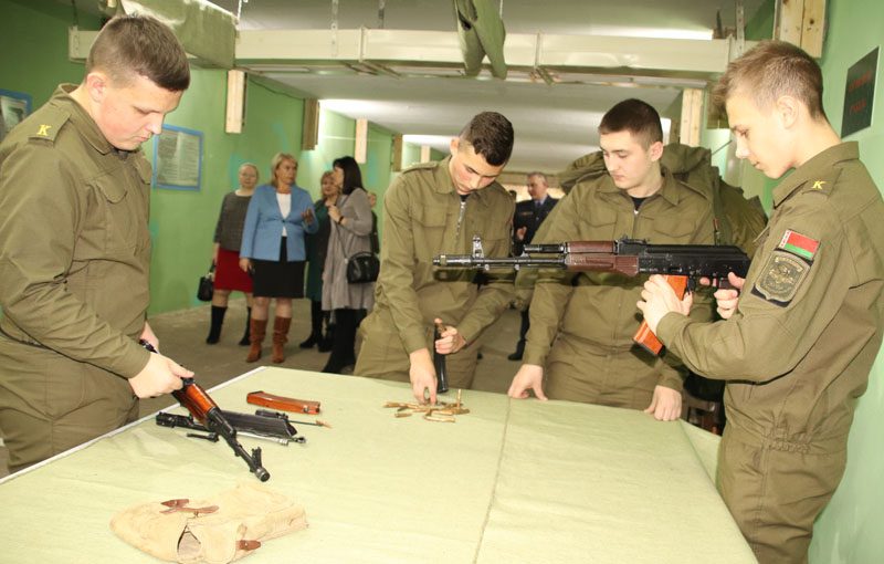 – 30 сентября воспитанники военно-патриотического клуба «Зубр» в торжественной обстановке произнесли первую в жизни клятву и приступили к освоению программы. В состав клуба вошли 48 учащихся городских и сельских школ, – отметил Александр Николаевич. – Программой клуба предусмотрено изучение разнообразных дисциплин: от строевой, огневой, медицинской и тактической подготовки до занятий военно-прикладными видами спорта. Ожидается, что такой подход позволит воспитанникам клуба выработать в себе качества достойного гражданина своей страны, стать настоящими защитниками Отечества, определиться с будущей профессией. Ребята найдут в клубе настоящих друзей, обретут уверенность в себе и своих силах. Занятия в клубе проходят два раза в неделю, во вторую субботу каждого месяца – в отделе внутренних дел. Налажено сотрудничество с войсковыми частями, ОМОНом. Ребята побывали на экскурсиях в Минске и Могилеве, запланирована поездка в Брест. Уверен, что военно-патриотический клуб «Зубр» впереди ждет большое будущее.