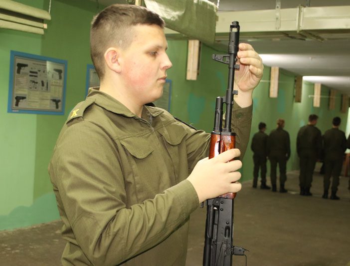 Далее курсанты продемонстрировали свои умения: в тире показали сборку и разборку автомата Калашникова, снаряжение магазинов патронами; в учебном классе – занятие по медицинской подготовке, и, конечно же, занятие в спортивном зале.