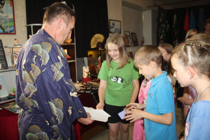 Сегодня, 21 июня, вместе с воспитанниками оздоровительного лагеря «Мечта» состоялась презентация выставки. Подробно о стране Восходящего солнца рассказал исследователь культуры Японии, представитель Японского центра культуры и спорта из Санкт-Петербурга Владислав Асака. Он увлеченно передал историю Японии, а также современную жизнь японцев. Было интересно послушать и сравнить с жизненным укладом белорусов.