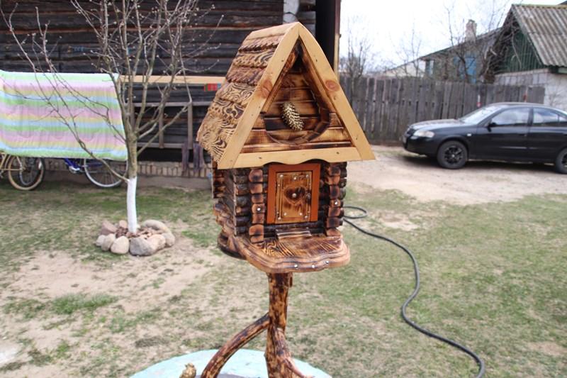 В прошлом году Евгений Васильевич и Нина Семеновна купили в агрогородке дом, поселились в нем. И вот сейчас обустраивают и дом, и территорию вокруг него так, как им нравится. Благо, Евгений Васильевич все умеет делать. Особенно доставляет удовольствие ему что-то мастерить, строгать и вырезать, – одним словом, работать с деревом. Поэтому из-под его умелых рук выходят такие шедевры зодчества. Они радуют глаз не только самого мастера и его супруги. Ими также могут полюбоваться другие люди.