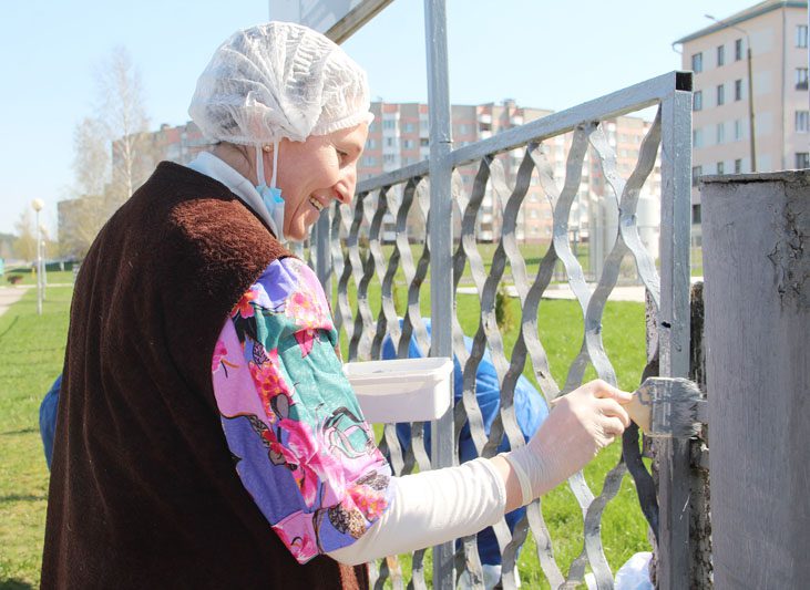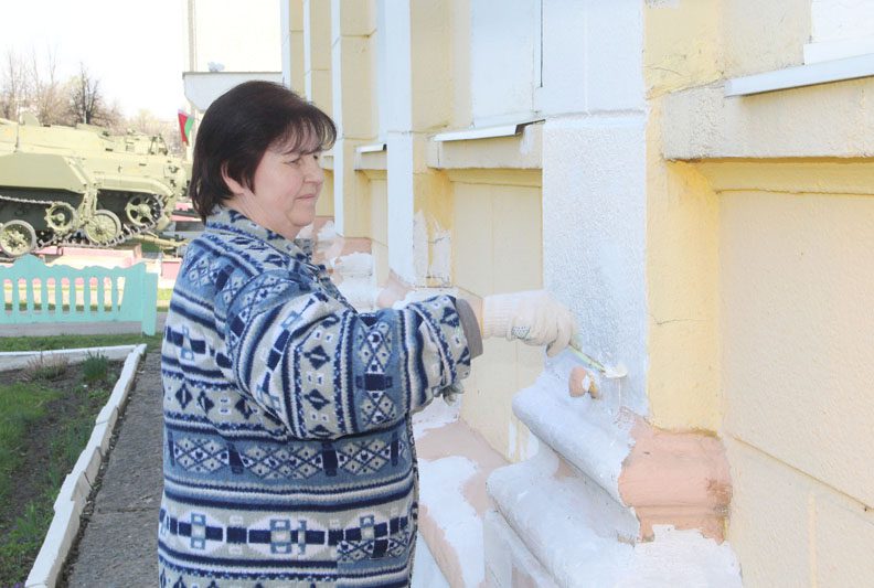 Коллектив соцслужбы наводил порядок на прилегающей территории, работники детской школы искусств красили фасад своего учреждения, а медработники – ограждение.