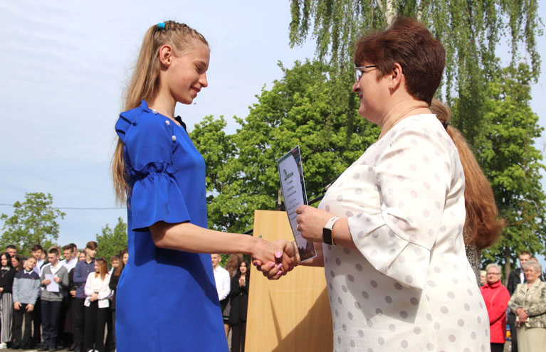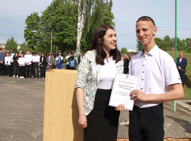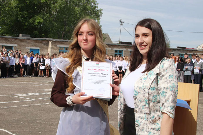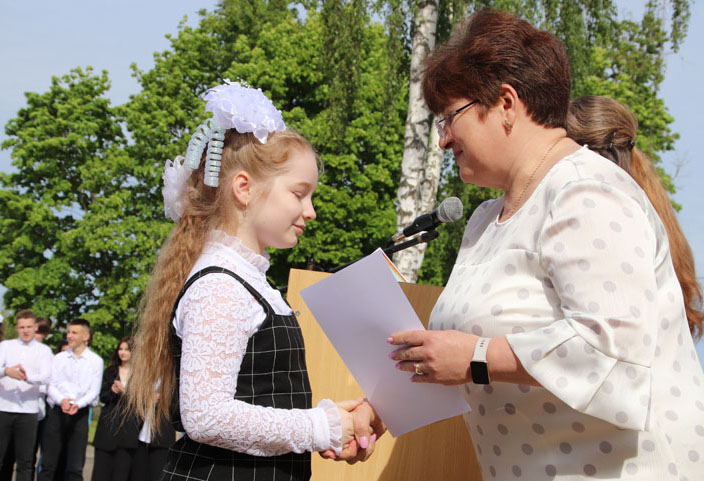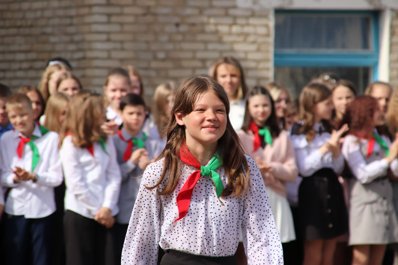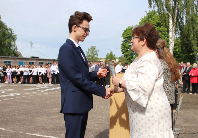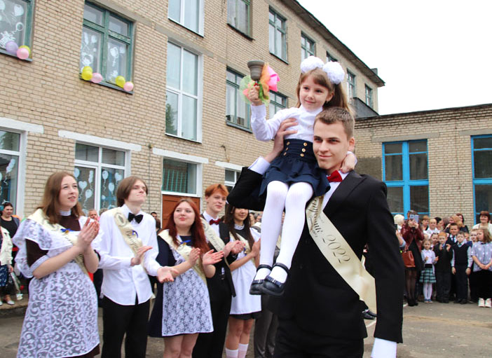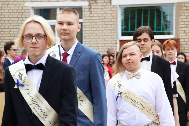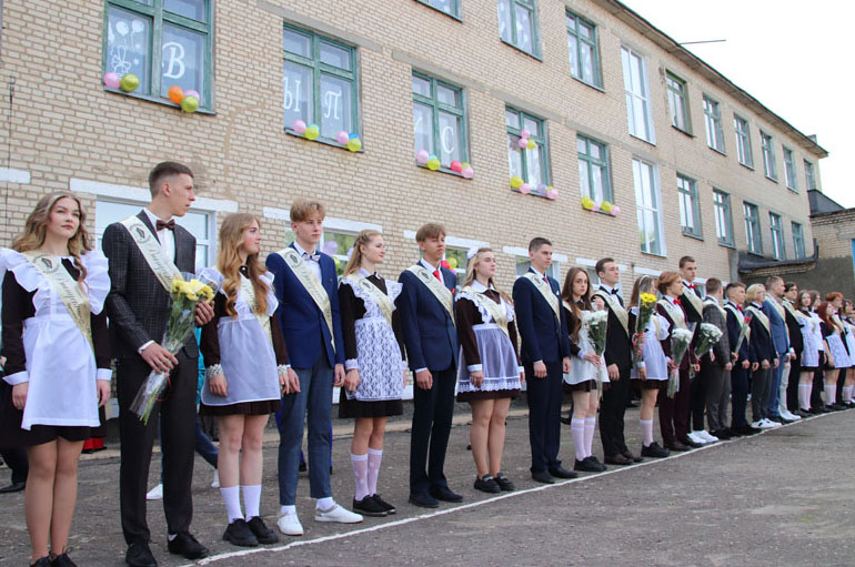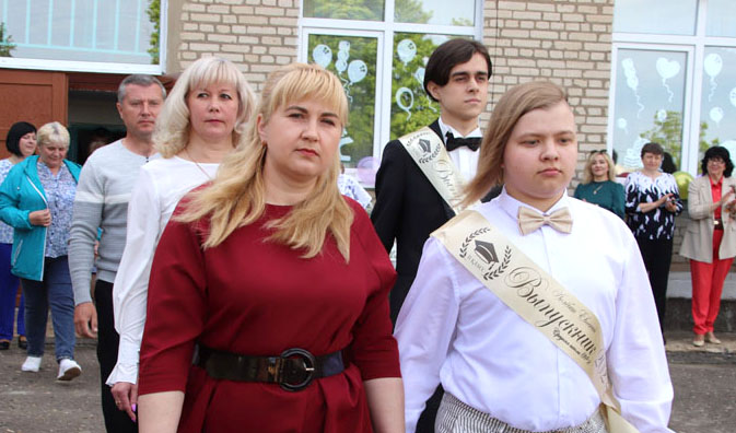 На праздничной линейке в честь этого события собрались педагоги, родители и, конечно же, виновники торжества – нарядные, красивые и уже такие взрослые. Большую школьную семью в торжественный день пришли поприветствовать председатель районного Совета депутатов, председатель РОО «Белая Русь» Лариса Герасимова, методист учебно-педагогического кабинета отдела по образованию, спорту и туризму Алеся Смильская и первый секретарь РК ОО «БРСМ» Мария Голикова.