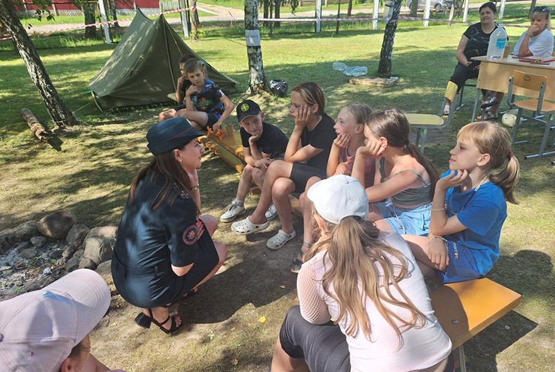 Работники Костюковичского РОЧС в рамках республиканской акции «Каникулы без дыма и огня!» проводят профилактические мероприятия для детей из оздоровительных лагерей.