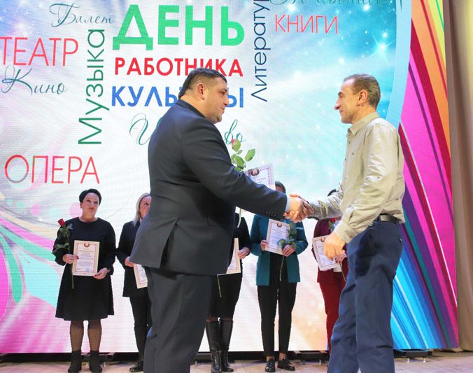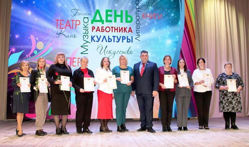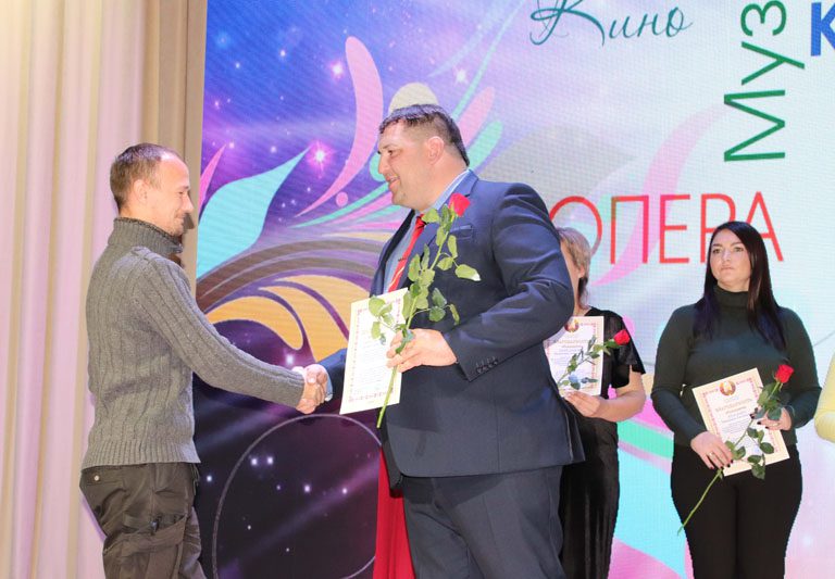 Председатель райисполкома Вячеслав Моксачев поздравил творческий коллектив и вручил Благодарственные письма райисполкома учителю детской школы искусств Людмиле Вишневской, заведующему филиалом «Пролетарский сельский клуб» ЦКС Светлане Даськовой. Председатель районного Совета депутатов Лариса Герасимова вручила Благодарственное письмо звукооператору РЦК Александру Селиванову. Почетной грамотой управления культуры облисполкома отмечены директор детской школы изобразительных искусств Татьяна Юрченко, учитель детской школы изобразительных искусств Марина Телепнева, заместитель директора детской школы искусств Марина Рашук. Председатель районной организации Белорусского профессионального союза работников культуры, информации, спорта и туризма Ирина Кондратенко вручила Благодарность председателям первичных профсоюзных организаций учреждений культуры Екатерине Якушкиной, Валентине Харитоненко, Олесе Понкратенко, Екатерине Лесько.