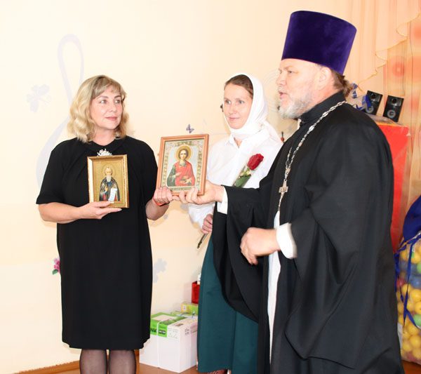 Накануне новоселья новый дом для воспитанников ЦКРОиР освятил настоятель Свято-Крестовоздвиженской церкви Сергий Подоляк, а на празднике он передал центру иконы со словами благословления.