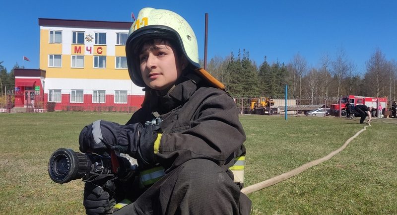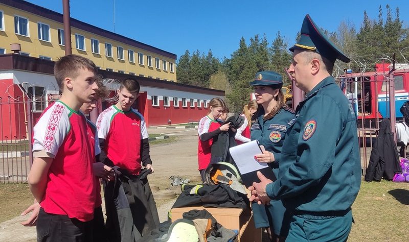 В период подготовки к соревнованиям ребята из школ города приходили в районный отдел по чрезвычайным ситуациям, чтобы потренироваться в надевании боевой одежды и в боевом развёртывании.