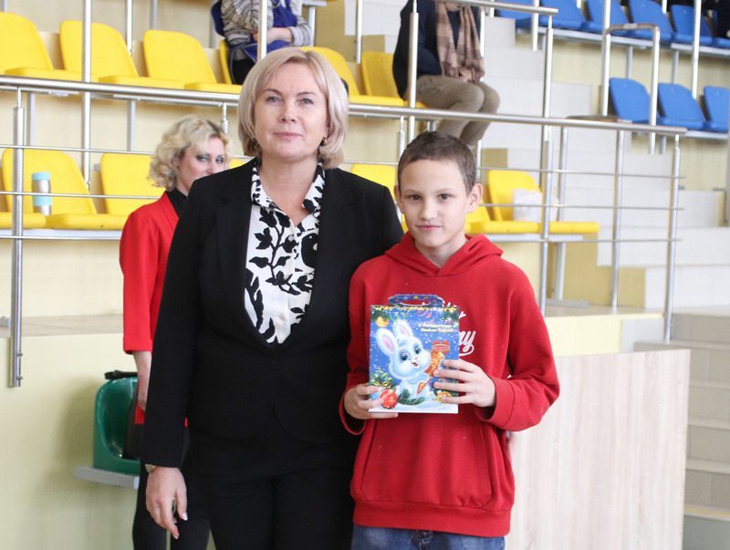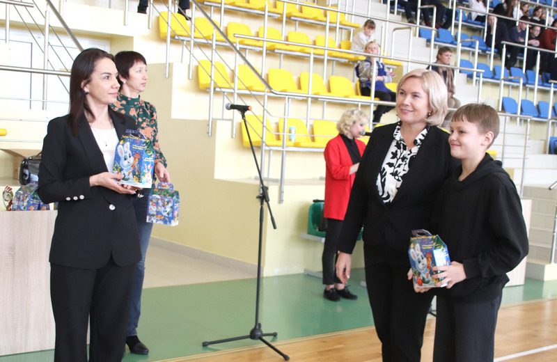 От районной организации общественного объединения «Белорусский фонд мира» российским гостям, а также лучшим юным спортсменам Костюковщины, прославившим наш район в текущем году на областных и республиканских соревнованиях в таких видах спорта как дзюдо, футбол, волейбол, бокс, легкая атлетика председателем районной организации Валентиной Манушенко были вручены сладкие подарки.
