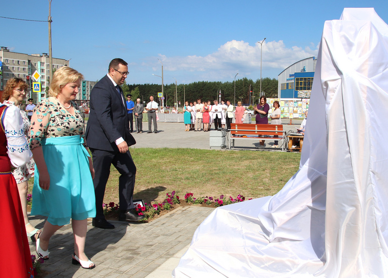 Права адкрыць памятны знак прадставілася людзям, якія зрабілі гэты падарунак: старшыні райвыканкама Аляксандры Міхеенка, члену Саюза пісьменнікаў Беларусі, паэткі Наталлі Азаранка, дырэктару ААТ «Беларускі цэментны завод» Ігару Сяргееву.