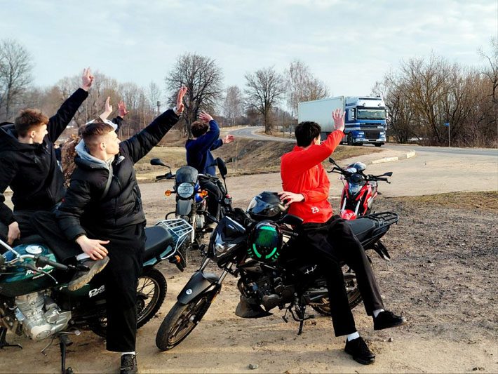 Выстроенные в ряды мото-машины и дымок от мангала привлекают внимание проезжающих водителей, которые сигналят в знак поддержки, а ребята, не сдерживая восторга, машут им в ответ руками и свистят.