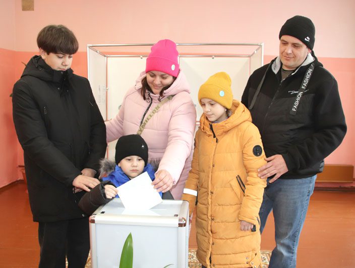 – Сегодня мы пришли с детьми, чтобы показать им пример, каким должен быть настоящий гражданин своей родины, – говорит Сергей Александрович. – Мы отдаем свой голос за надежность, законность, стабильность в нашей стране. Хотим, чтобы был мир, чтобы наши дети росли и развивались под мирным небом.