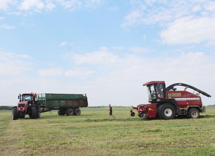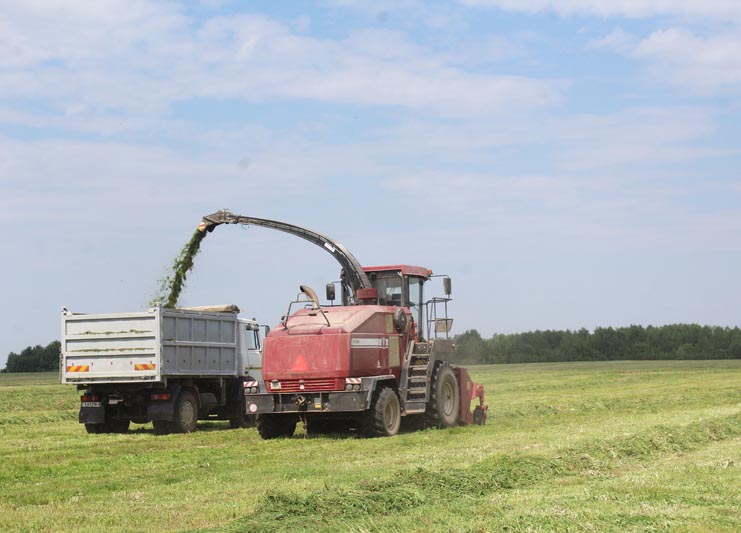 В этом хозяйстве первым укосом уже убрано 220 гектаров трав, преимущественно ранних злаковых, люцерны и клевера. На заготовку травяных кормов большие планы и надежды, ведь травостой в этом году не хуже прошлогоднего, а потому дело только за оперативной уборкой. Вся кормоуборочная техника, комбайны, тракторы, косилки, грузовики вышли в поля.