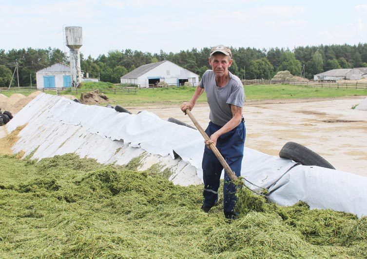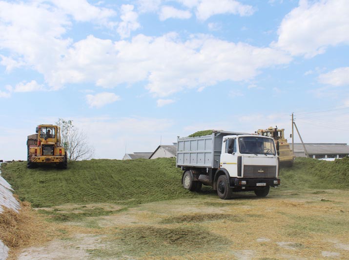Хозяйский подход в промышленных масштабах – это нелегко. Сперва травы скашивают, затем в течение двух часов их ворошат. Отслеживают содержание сухого вещества, сгребают, измельчают и свозят в сенажно-силосные траншеи. В хозяйстве «Белая Дуброва» ……. «зеленых коридора», в которые утрамбуют семь тысяч тонн сенажа и шесть тысяч тонн силоса. Качество кормов – принципиальный вопрос.