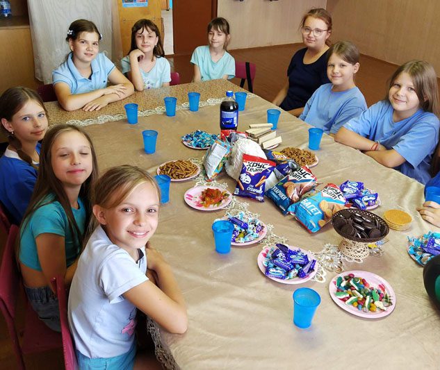 В завершение занятия группа станцевала флешмоб и полакомилась угощениями сладкого стола (вкусности тоже были синего цвета).