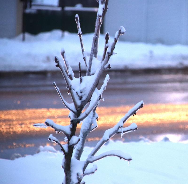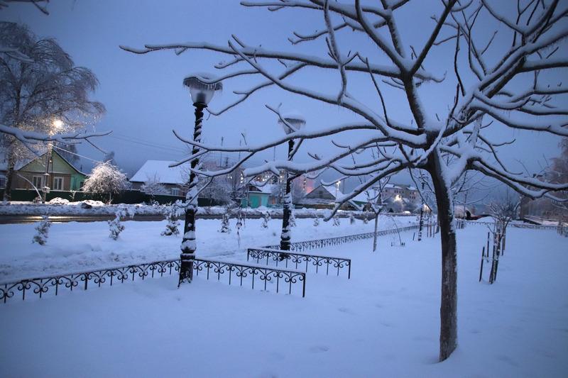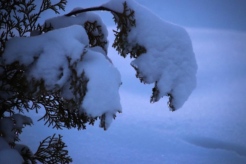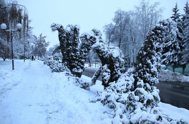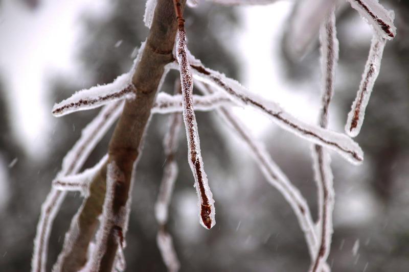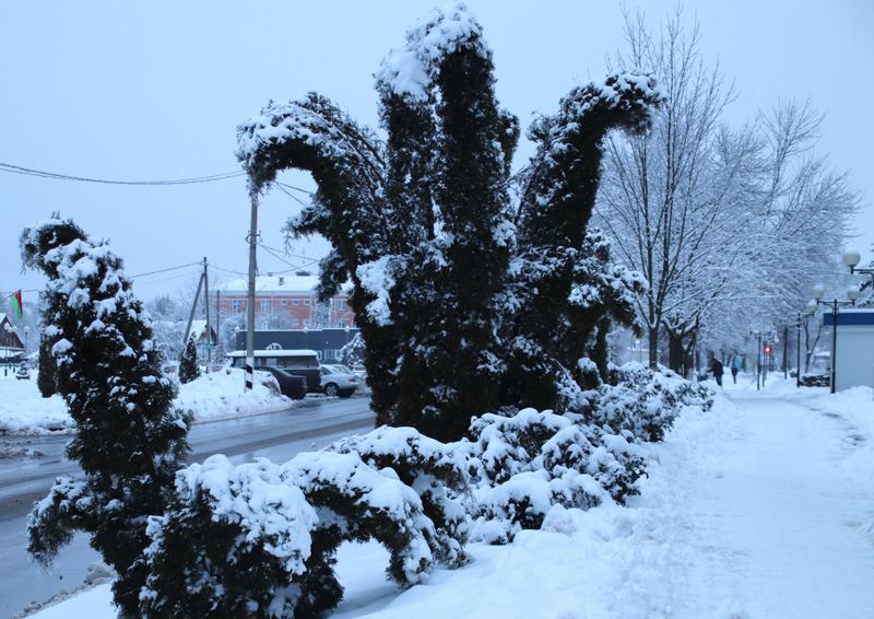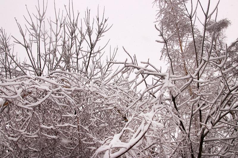 Затем пошел снег, который добавил белого цвета пейзажу. Деревья покрылись снежной коркой, благодаря которой они были похожи на невероятные сказочные растения.