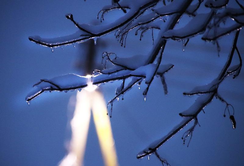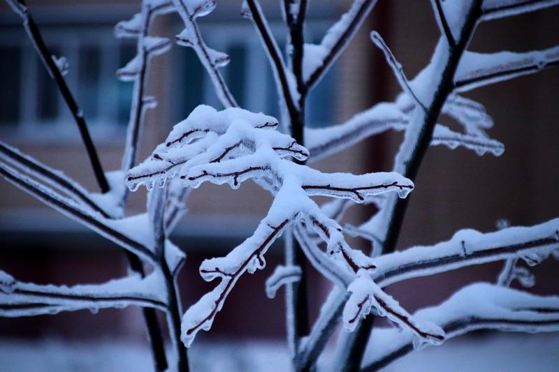 На минувшей неделе ледяной дождь превратился в настоящий лед, который покрыл деревья, машины и дома.
