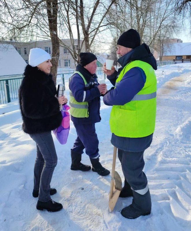 – Наши люди трудятся на улице вне зависимости от погодных условий. Даже когда сильный мороз, ледяной ветер, снег или дождь они продолжают выполнять все поставленные перед ними задачи. Такая непростая, на важная и всем нам нужная работа. И поэтому мы с удовольствием организовали эту акцию, согревая не только горячим чаем, но и теплом своих сердец, – рассказала Ирина Сидоренко.