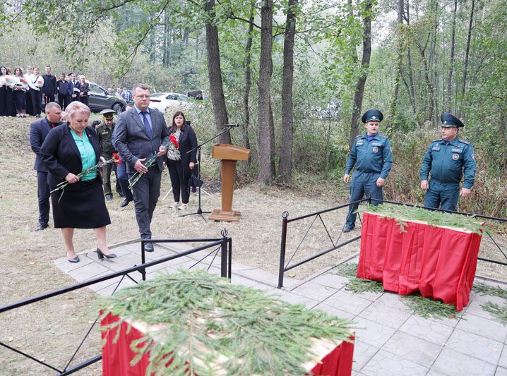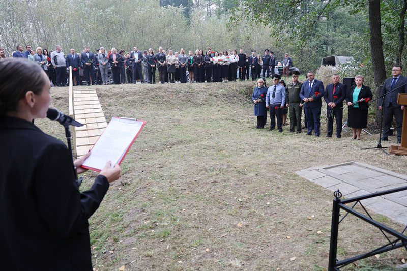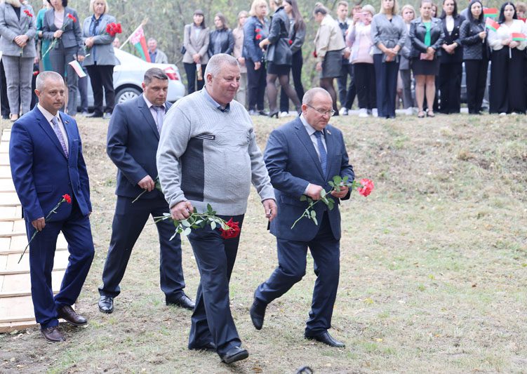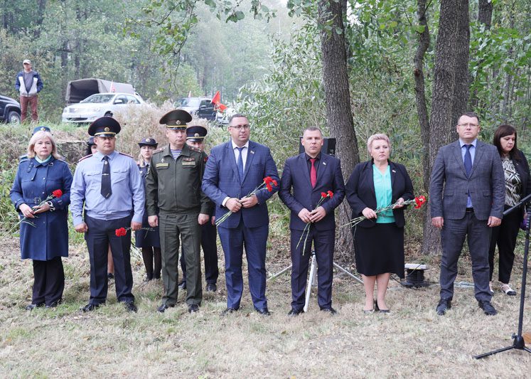 – Великая Отечественная война принесла немало бед и разрушений. В августе 1941 года немецко-фашистскими захватчиками был оккупирован Костюковичский район. Сожженные деревни, руины, многочисленные человеческие жертвы – таков кровавый след оккупации. Невиданные зверства творили гитлеровцы во время карательных экспедиций. Места злодеяний фашистов в нашем районе – это сожженные вместе с жителями деревни Боровая, Ковычицы, Паньковская Буда, Затишье, места массового уничтожения мирных жителей на станции Коммунары, в деревне Самотевичи и в урочище Боровец. В Костюковичском районе увековечена память более двух тысяч защитников Отечества – уроженцев самых разных уголков бывшего Советского Союза, – обратился к участникам митинга глава района Вячеслав Моксачев. – Все вы знаете выражение: «Война не закончена, пока не захоронен ее последний солдат». И пусть братская могила, где мы сегодня собрались, примет останки солдат, жизнь которых оборвалась в первые месяцы войны. Они сражались и погибли за нашу родину.