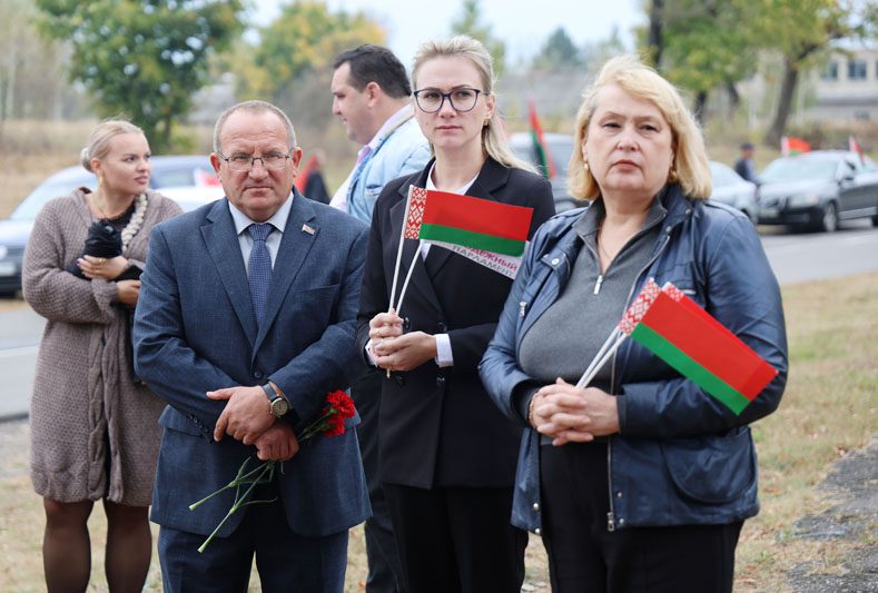 Участники автопробега посетили братские могилы, на одной из которых в деревне Борейки состоялось торжественное перезахоронение воинов, погибших в годы Великой Отечественной войны. Их останки были найдены членами поискового отряда.