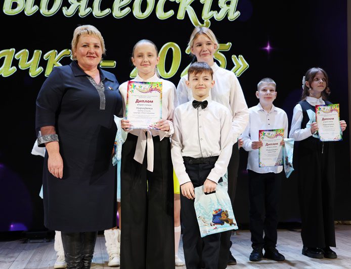 Поздравить ребят с участием и победой пришли почетные гости – глава Костюковичского района Вячеслав Моксачев, председатель районного Совета депутатов Лариса Герасимова, заместитель председателя райисполкома Валентина Манушенко, начальник отдела культуры райисполкома Сергей Буленков, директор детской школы искусств Анна Борисова.