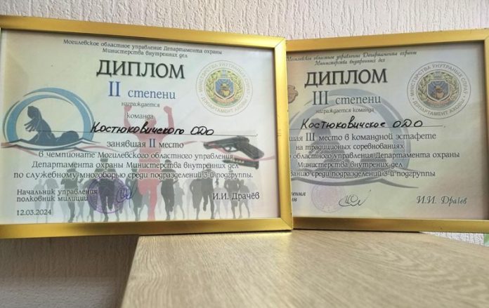 В программе чемпионата по служебному многоборью сотрудники состязались в стрельбе, плавании и беге. От Костюковичского отделения приняли участие Евгений Овсянников, милиционер группы задержания группы милиции, и Игорь Дорошенко, милиционер-водитель группы задержания группы милиции. Готовность побеждать и получать удовольствие от победы – вот составляющие позитивного настроя участников соревнований. Среди подразделений 3 подгруппы команда Костюковичского отделения заняла 2 место.