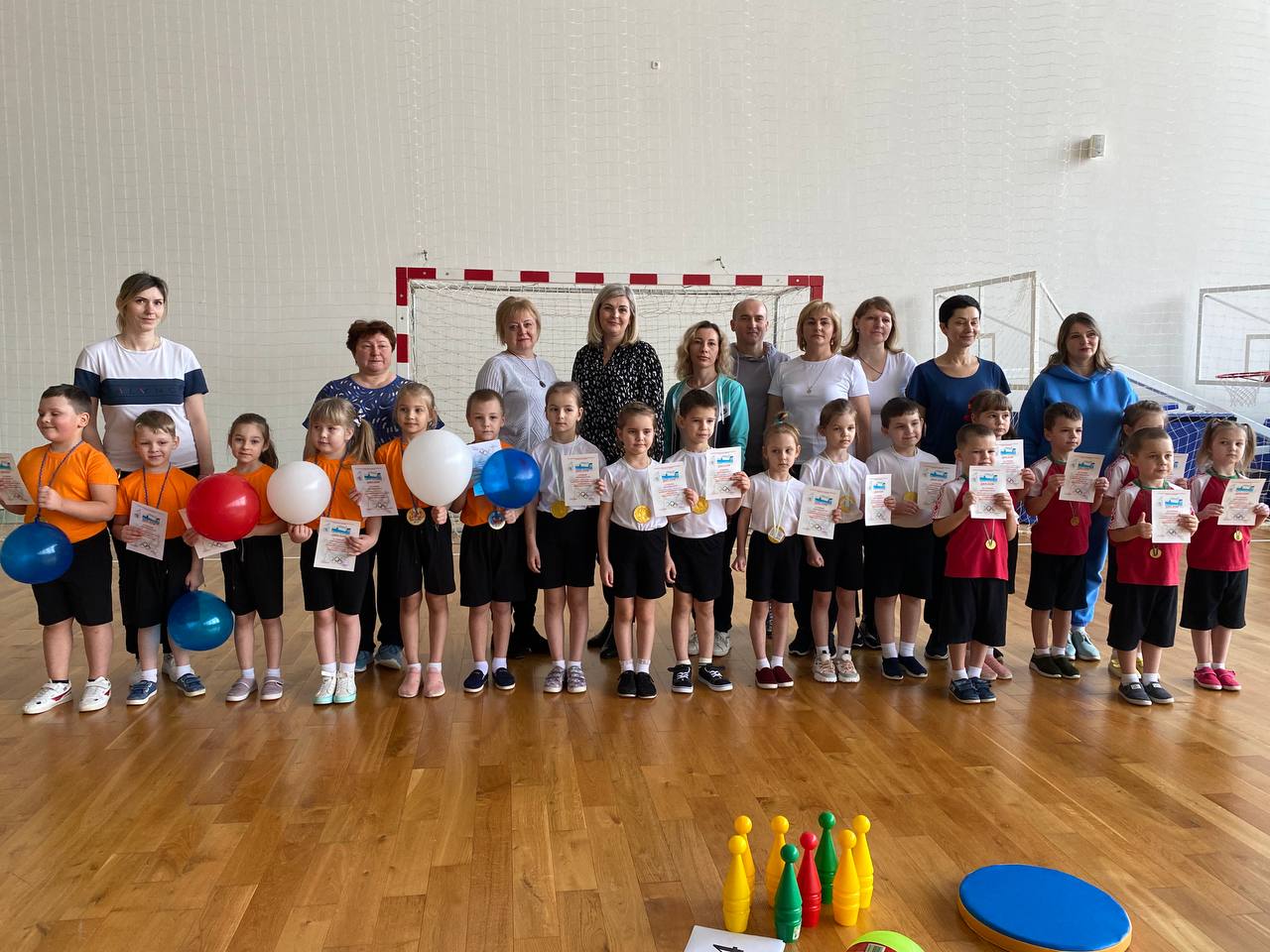 Малыши соревновались в шести видах: спринтеры, кегли, кенгуру, олимпийские кольца, сложи цветок и поменяй мяч. Самыми быстрыми и ловкими оказались ребята из дошкольного центра развития ребенка №1, вторыми оказались воспитанники детского сада №2, а третье место досталось мальчишкам и девчонкам из детского сада №4.