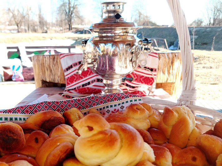 Як заўсёды святкаванне пачалося з прыгатавання пачастункаў. На вогнішчы варылася вуха, пах якой казытаў нос, а яечня з салам уздымала настрой усім прысутным. Гарачы чай з самавара і печаныя гаспадынькамі булачкі-птушачкі стваралі атмасферу свята і ўтульнасці. Сонца свяціла ярка, запрашаючы ўсіх атрымаць асалоду ад гэтага цудоўнага дня, і дарыла вясновую радасць кожнаму сэрцу.