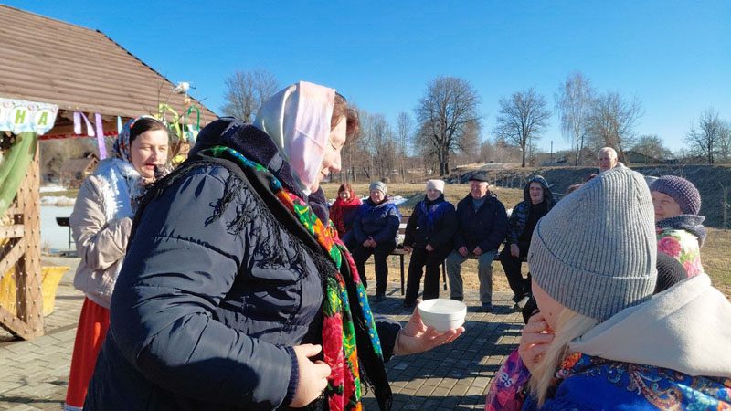 Асаблівую ўвагу прыцягнула да сябе стараста вёскі Наталля Лабынцава, якая нагадала аб традыцыі ўмывацца талай вадой са снегу ў гэты дзень. Яна правяла абрад, і кожны жадаючы памыўся, адчуваючы на сабе свежасць і сілу прыроды.