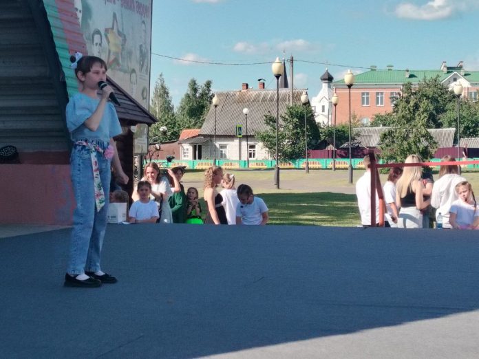 Празднование Дня Независимости Республики Беларусь продолжилось в Костюковичах вечером. С концертной программой "Мир детства" на сцене амфитеатра выступили юные таланты.