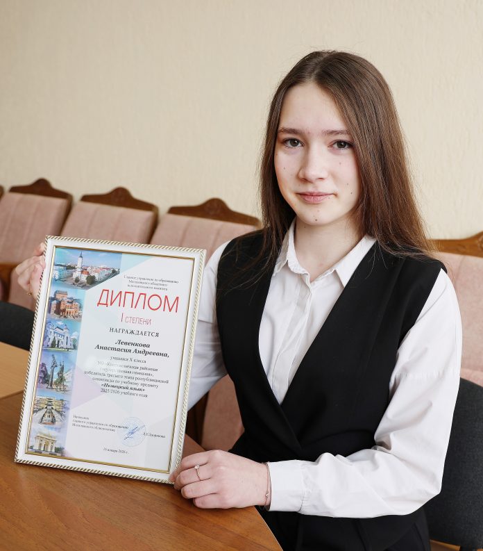 Юная гимназистка Анастасия ЛЕВЕНКОВА стала победителем третьего (областного) этапа республиканской олимпиады по учебным предметам среди учащихся общего среднего образования, завоевав Диплом I степени по...