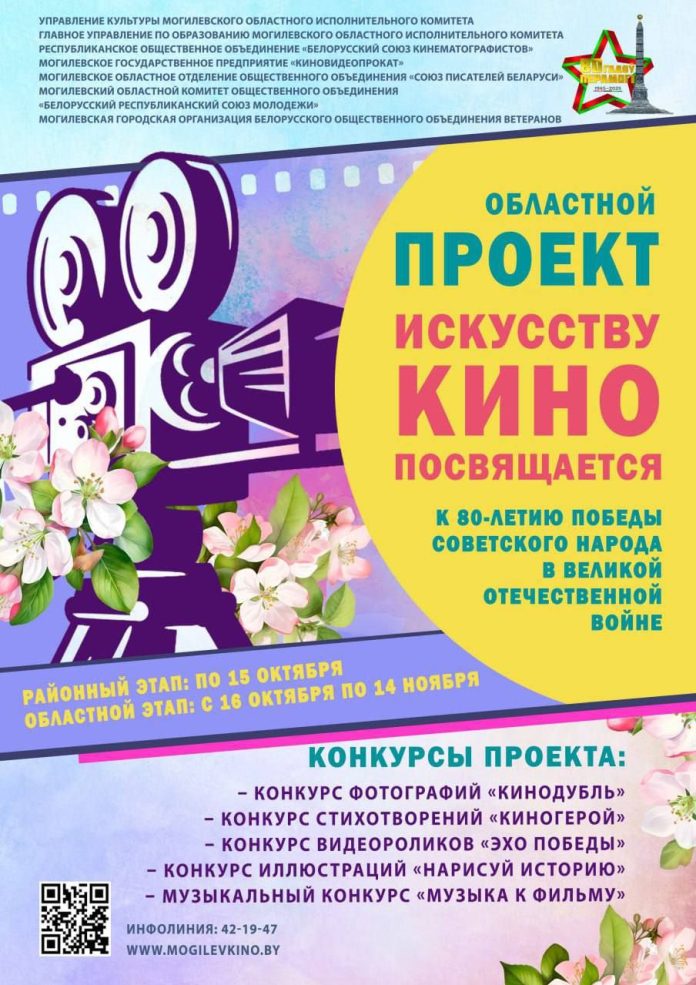 Приглашаем всех желающих принять участие в конкурсах областного проекта «Искусству кино посвящается» к 80-летию Победы в Великой Отечественной войне.
