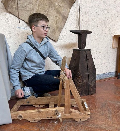 Галоўныя прыгоды чакалі ўдзельнікаў мерапрыемства на квэст-гульнях. Таты і мамы разам з дзецьмі разгадвалі загадкі і красворды, збіралі пазлы і правяралі свае веды пра скарбы пастаянных экспазіцый музея. На квэсце па выставе “Грукат латаў і звон кальчугі” кожны мог адчуць сябе рыцарам, прымерыўшы сапраўдныя даспехі і ўзяўшы ў рукі старадаўнюю зброю. Як думаеце, наколькі зручнымі былі, напрыклад, рыцарскія пальчаткі? Ці здолеў бы закаваны ў метал да кончыкаў пальцаў ваяр… разгарнуць цукерку? На практыке гэта высветлілі госці вечара. Можна было нават паўдзельнічаць ў аблозе горада і пакіраваць катапультай – у міні-фармаце, канечне.