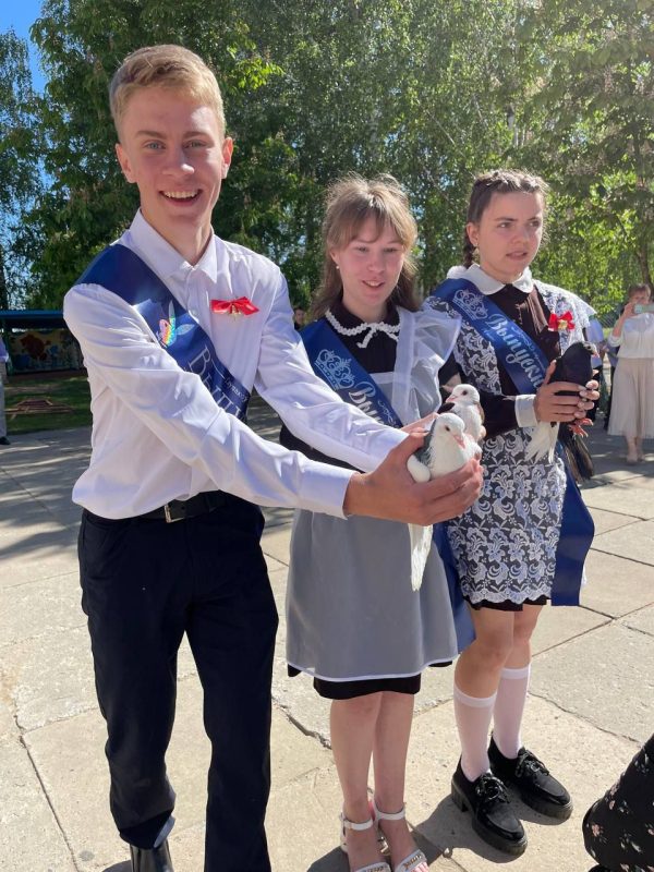 В конце мероприятия выпускники девятых классов выпустили в небо разноцветные шары, а одиннадцатиклассники отпустили белоснежных голубей, загадав при этом сокровенные желания.