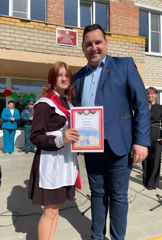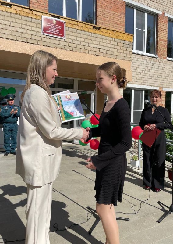 В своей речи Валентина Дадалева передала восхищение учащимися школы, отметив, что выпускники получили достойное образование и воспитание, ими могут гордится учителя и родители. Также она отметила, что впереди школьников ждут радостные каникулы и ответственные трудовые будни летнего трудового лагеря. Валентина Леонидовна выразила надежду, что в учреждении образования будет и далее взращиваться достойная смена в труде и учебе.