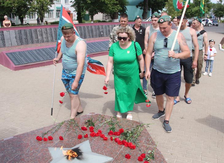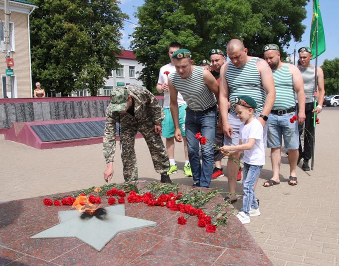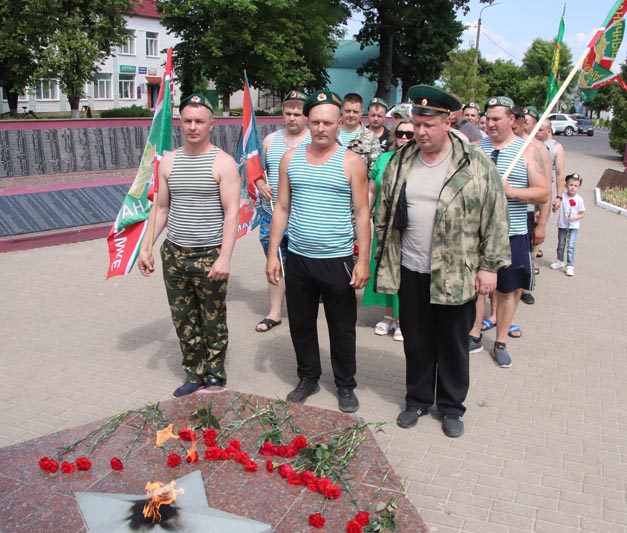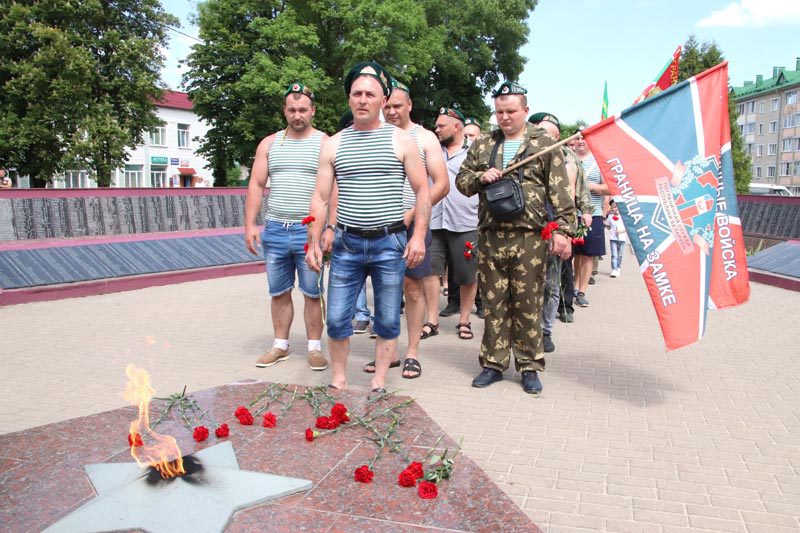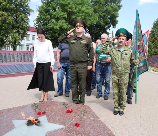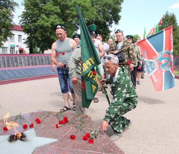 Сегодня, 28 мая, пограничники разных поколений Костюковщины традиционно собрались у мемориала «Ахвярам Вялікай Айчыннай вайны», чтобы возложить цветы к вечному огню и почтить минутой молчания память о погибших защитниках нашего Отечества.
