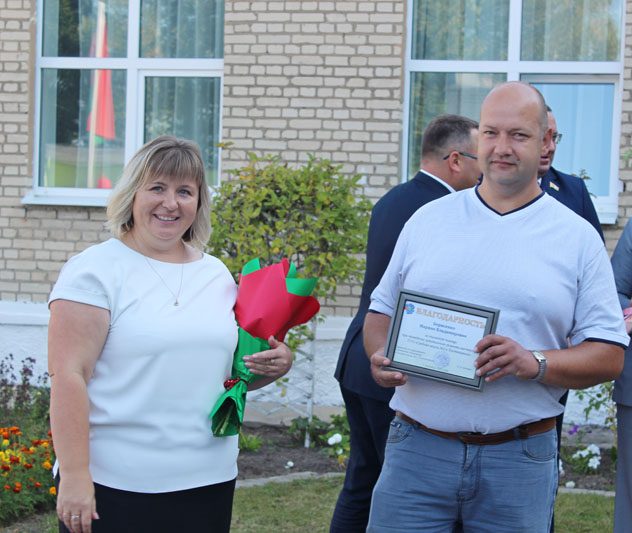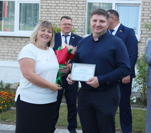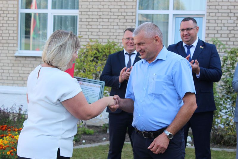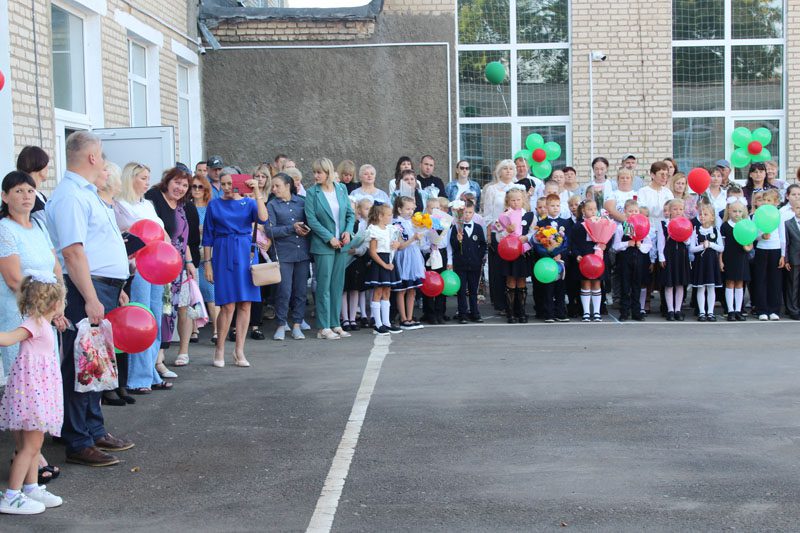 Радость первого звонка с детьми и педагогами разделили уважаемые гости, среди которых – глава района Вячеслав Моксачев, член Совета Республики, генеральный директор ОАО «Белорусский цементный завод» Игорь Сергеев, заместитель председателя райисполкома Валентина Манушенко, начальник отдела по образованию райисполкома Елена Хомченко, начальник ДРСУ-130 Сергей Шевцов и главный инженер жилкоммунхоза Алексей Самохин.