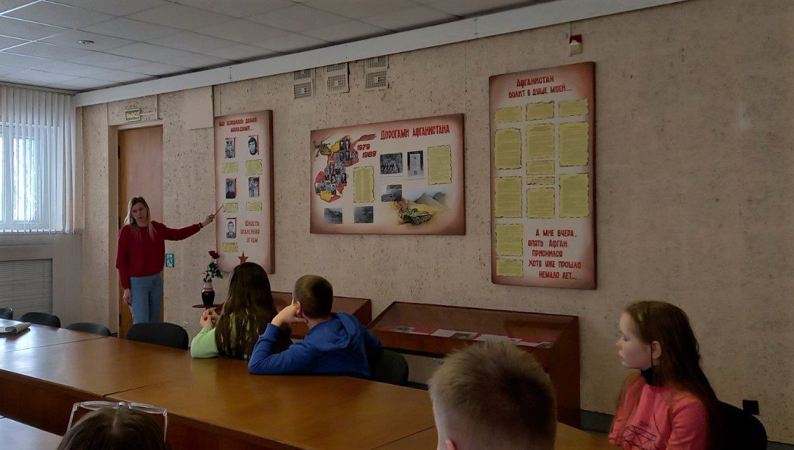В рамках республиканской декады гражданско-патриотических дел «Афганістан у лёсах нашых землякоў», которая ежегодно проводится в Республике Беларусь, учащиеся ГУО «Белынковичская средняя школа Костюковичского района» посетили Костюковичский краеведческий музей. Об этом корреспондентам «ГК» сообщила заместитель директора по учебно-воспитательной работе Белынковичской СШ Маргарита Мухавцова.