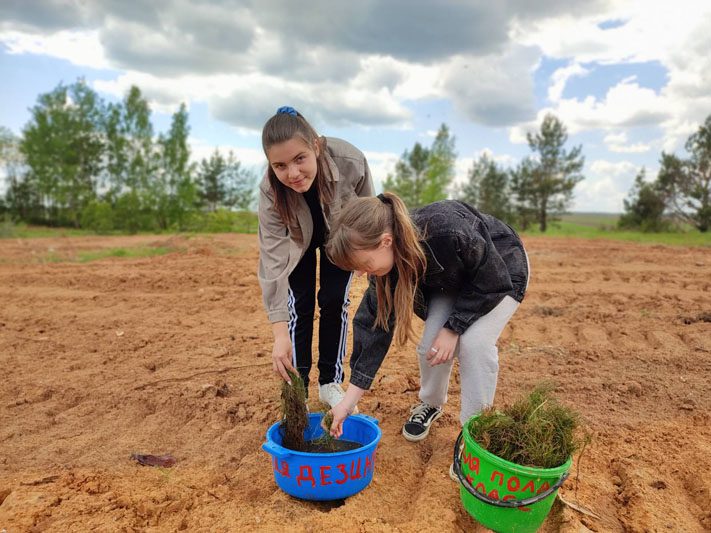 Как рассказала директор школы Нина Дылико, ребята в месте с педагогами высадили саженцы сосны на пустыре возле школы.